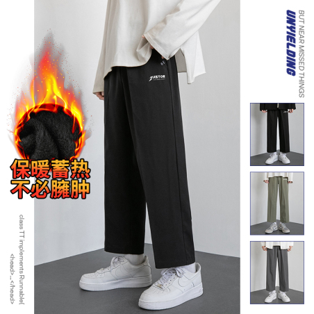 冬季加绒裤子男秋冬款加厚潮流休闲九分裤宽松阔脚平脚裤