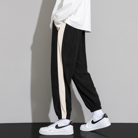 春秋季灯芯绒男生休闲裤宽松潮牌运动束脚裤子青少年百搭高街美式阔腿长裤