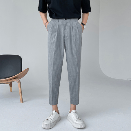 西裤男士2024新款条纹轻熟风宽松9分高级感直筒休闲九分裤