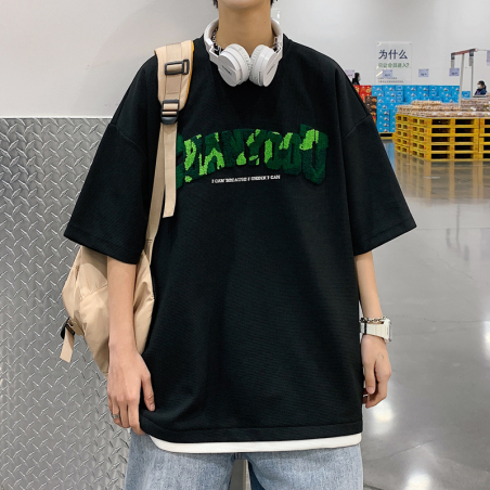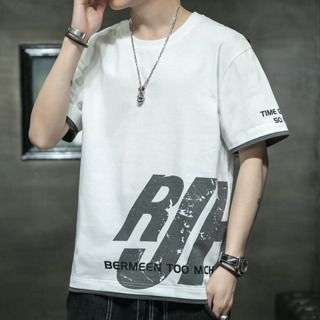 2021夏季新款男装短袖青年字母T恤半袖时尚韩版上衣