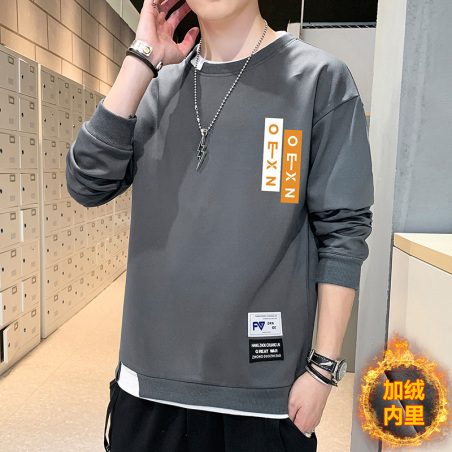 秋冬季潮流休闲圆领时尚加绒加厚卫衣青年帅气长袖T恤上衣