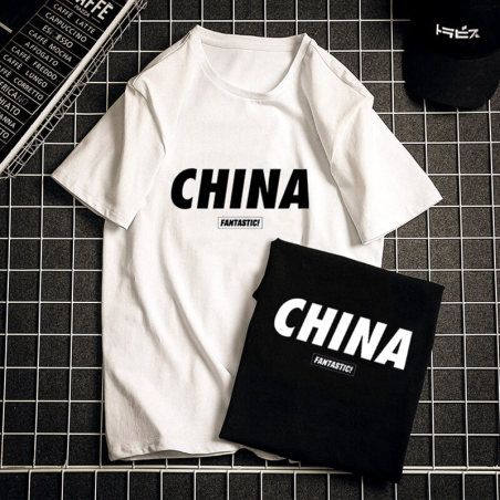 夏季短袖t恤男中国字母印花纯棉宽松圆领体恤薄款国潮跑量打底衫