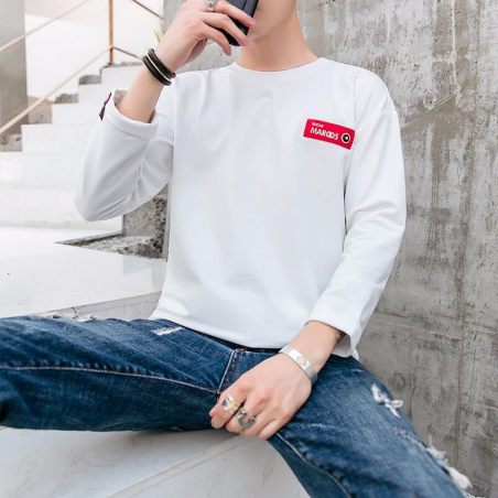 日系白底平铺春秋季新款男士卫衣休闲百搭青年帅气长袖T恤圆领钢印卫衣,控价49.00