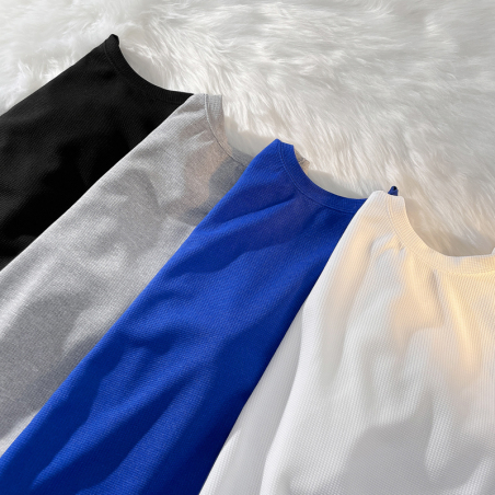 2022夏季短袖T恤男纯色休闲青年舒适个性华夫格T恤
