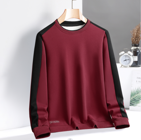 卫衣男秋季新款撞色男士休闲套头长袖T恤时尚运动圆领拼色潮流宽松型