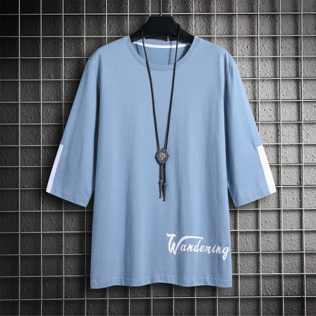 2020夏季新款男七分袖t恤潮牌纯棉大码印花加肥男装挂拍