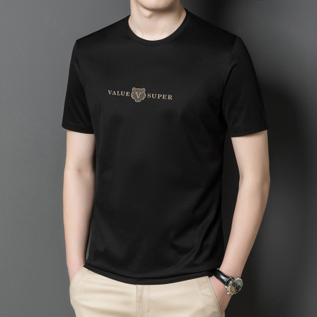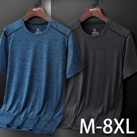 冰丝大码圆领T恤中青年时尚休闲夏季冰凉短袖T恤男肥佬大码