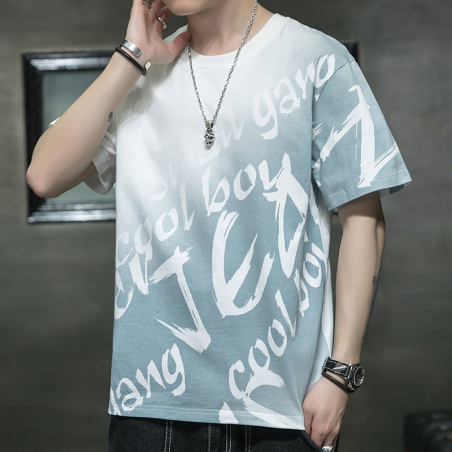 玖儿服饰夏季新款潮流圆领短袖T恤男五分袖印花体恤上衣