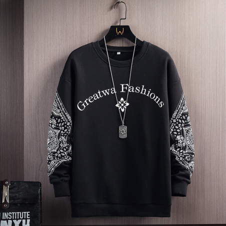 秋季印花长袖卫衣男t恤男休闲圆领套头港风宽松