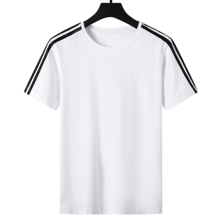 2022夏季新款冰瓷棉T恤三条杠男款短袖休闲透气上衣170克
