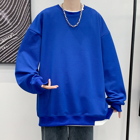 圆领设计感卫衣男2024春秋季新款韩版宽松套头无帽日系打底T恤,控价22.00