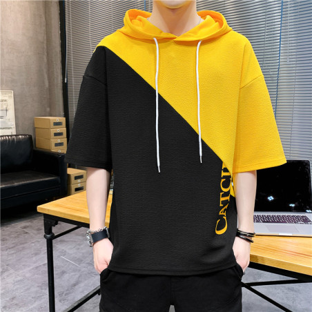 100%棉新款夏季新款短袖男宽松连帽纯棉短袖T恤韩版半袖