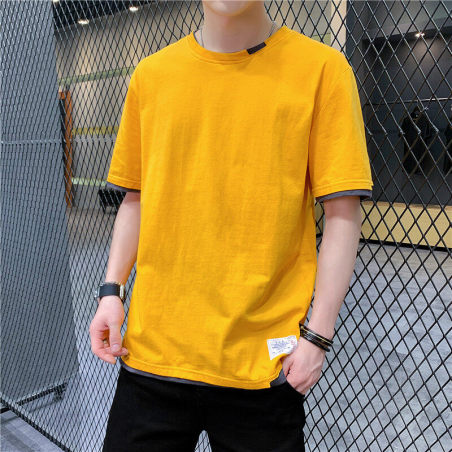 100%棉短袖t恤男夏季潮流宽松假两件潮牌港风学生半袖T恤