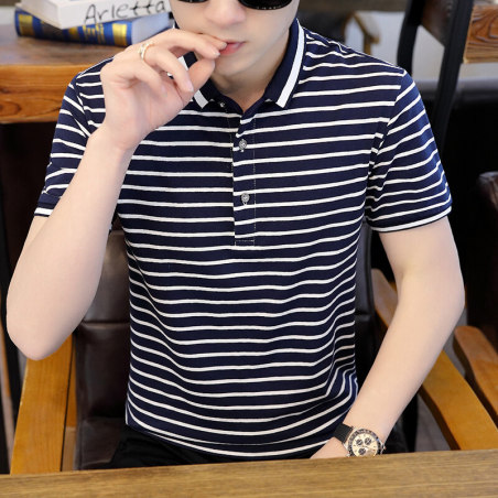 男士polo衫短袖t恤夏季纯棉条纹商务新款翻领半袖打底衫上衣