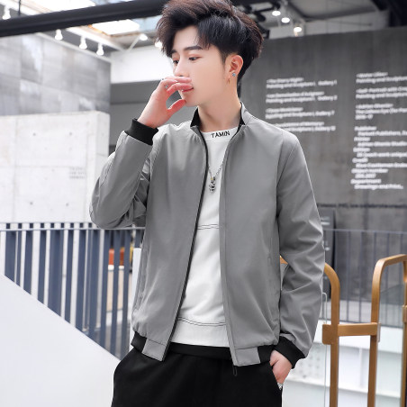 春秋季2020新款青年男外套纯色夹克男装休闲潮流帅气百搭高领