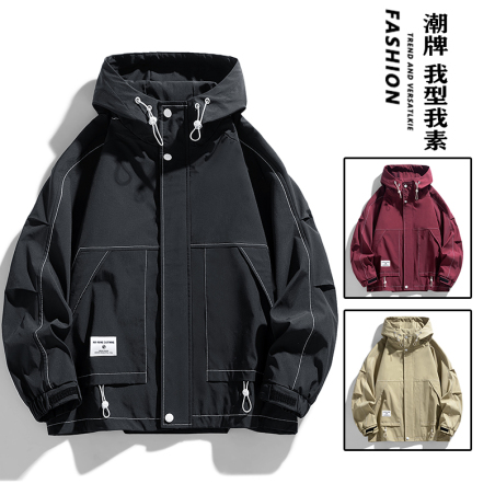 2023秋季新款冲锋衣男运动服户外保暖防风休闲夹克日系拼接男装外套潮流
