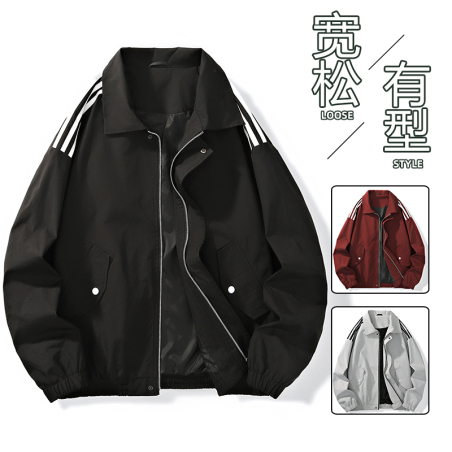 2024春秋新款翻领夹克男三条杠宽松潮牌韩版二开低价跑量公版得物唯品潮牌外套男装,控价98.00