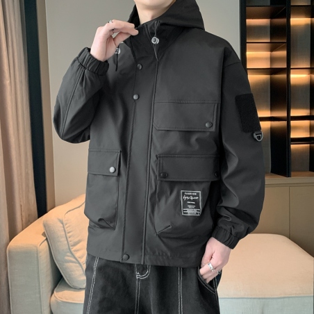 春秋日系多口袋工装连帽冲锋衣男女同款户外防风夹克外套