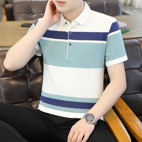 短袖T恤男士中青年夏季条纹翻领体恤半袖纯棉商务休闲POLO衫