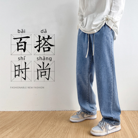 大库存牛仔裤男士新款直筒宽松港风学生垂感拖地阔腿潮流休闲长裤