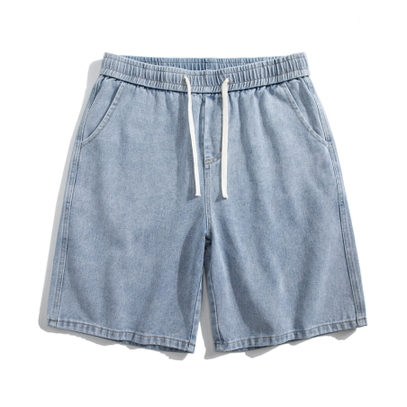 薄款牛仔短裤男港风夏季潮牌ins学生宽松百搭外穿松紧腰五分裤