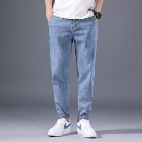 外贸尾单剪标裤子2021夏季新品男装休闲舒适百搭中腰直筒牛仔