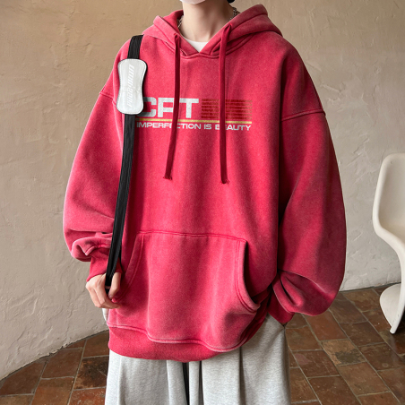 2023年冬季新款加绒连帽卫衣字母渐变印花休闲百搭港风上衣高街感