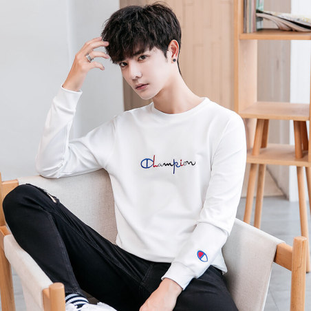 青少年长袖t恤男学生宽松内搭打底衫加肥加大码薄圆领卫衣上衣潮