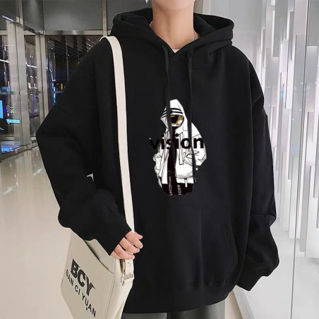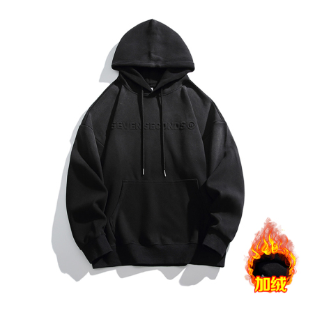 380克秋冬加绒连帽公版卫衣男情侣装宽松套头大码男外套WY8003
