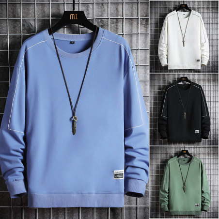 春秋款圆领卫衣男士纯棉宽松大码打底衫情侣纯色T恤衫套头上衣女