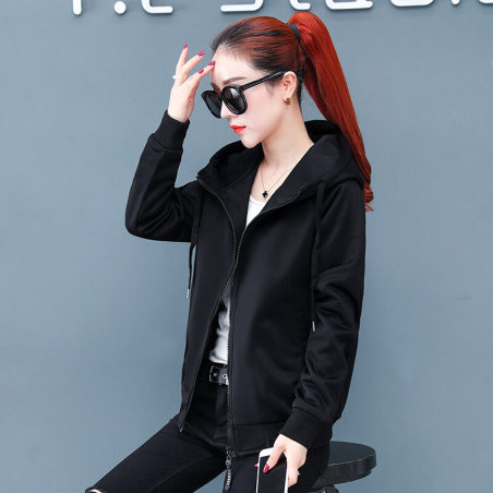 图荣运动外套女春秋连帽衫上衣韩版大码学生开衫休闲卫衣一件代发