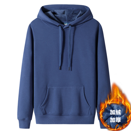 新款秋冬季男士加绒连帽休闲套头卫衣防棉材质百搭纯色款宽松版型