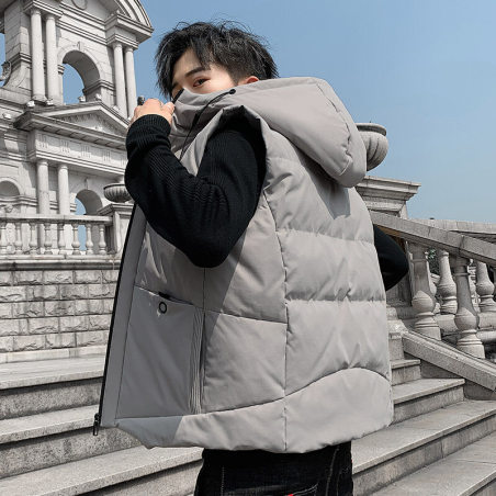 新款大码开衫连帽拆卸式马甲纯色简约时尚潮流外套男羽绒棉