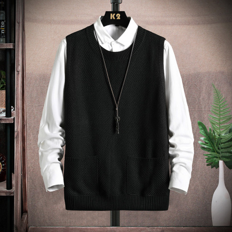 情侣装19秋冬款男士马甲圆领毛衣宽松潮流男士针织衫港风毛线背