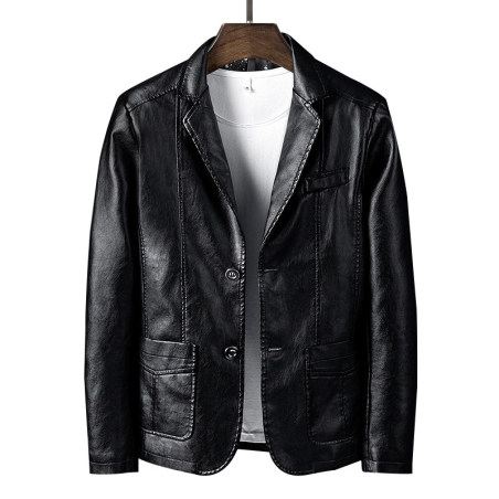 2019新款商务休闲西装领皮衣
