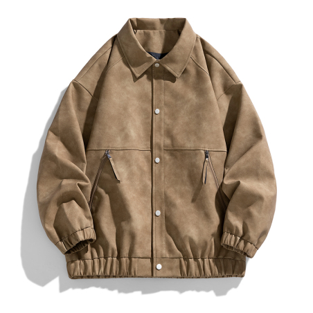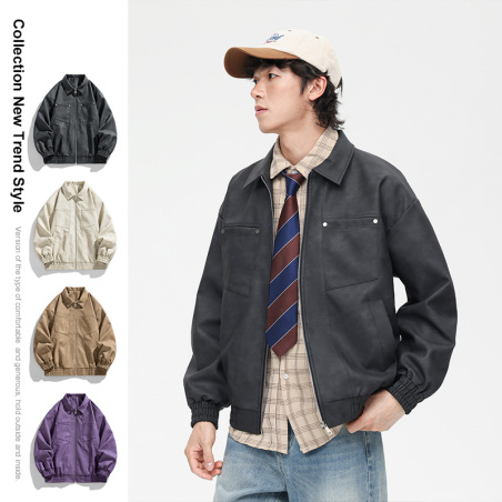 2024秋季新款美式复古翻领皮衣外套男美拉德高级感麂皮绒情侣夹克