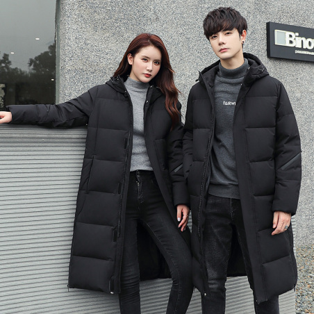 中长款羽绒服男2021新款加厚保暖连帽上衣韩版潮流情侣装男士