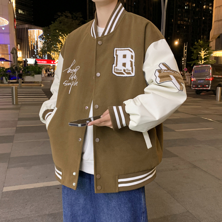 2023年冬季新款轻薄羽绒服情侣款棒球领毛呢刺绣夹克白鸭绒外套上衣加厚保暖