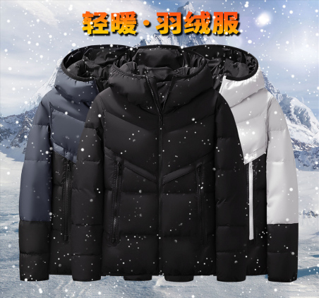 80白鸭绒时尚休闲中青年冬季保暖羽绒服男士连帽羽绒服