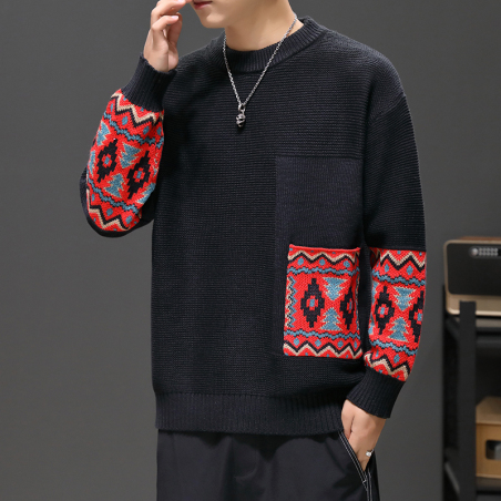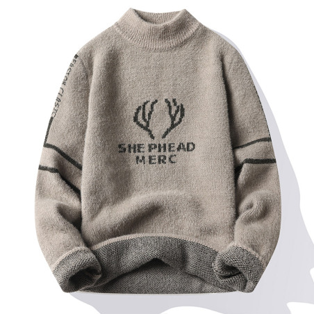 潮流宽松毛衣男冬季新款半高开衫长袖套头针织衫