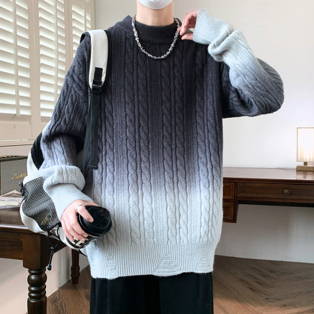 渐变宽松毛衣男潮流时尚男士圆领毛线打底内搭衣