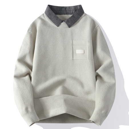 NASA潮牌高品质ins抗起球假两件衬衫领毛衣针织衫毛线衣男士,控价90.00