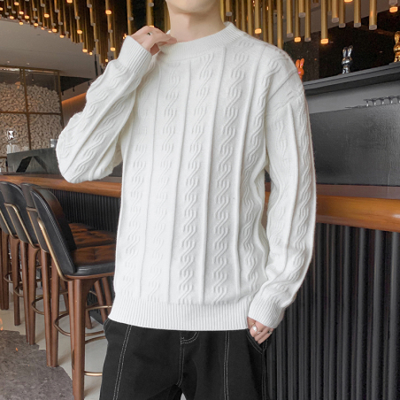 2024秋冬季新款圆领加厚保暖针织衫毛衣男士潮流休闲百搭青年套头上衣打底衫