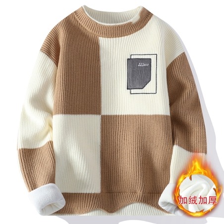 秋冬季毛衣男加绒加厚宽松上衣长袖圆领毛衣
