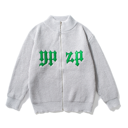 纯色开衫毛衣秋冬字母刺绣宽松休闲针织衫潮流上衣男