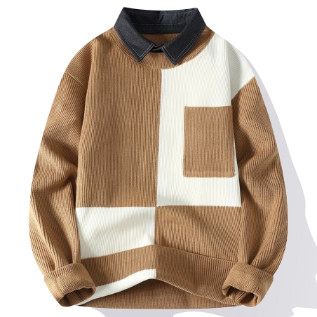 牛仔假两件2021男士新款半高领纯色毛衣M72