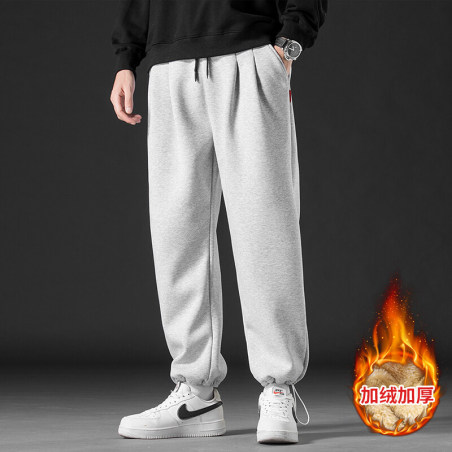 2021纯棉银狐绒运动裤男冬季加绒加厚青年保暖时尚休闲棉裤