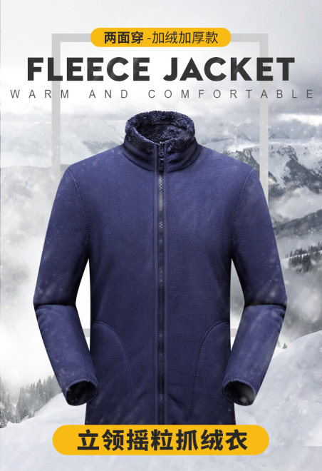 珊瑚绒摇粒绒男式外套双面抓绒保暖外套两面穿立领