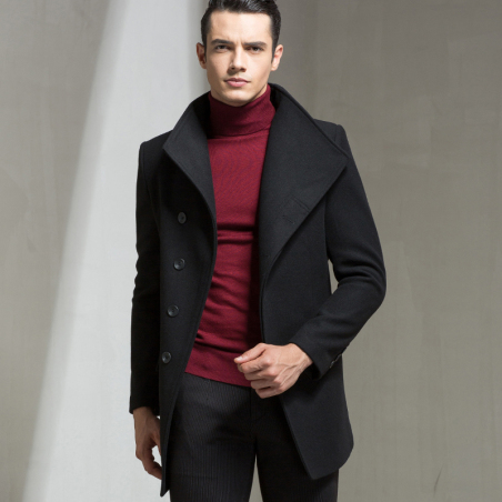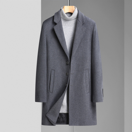 羊毛呢子大衣潮时尚中长款外套中老年男装跨境专供