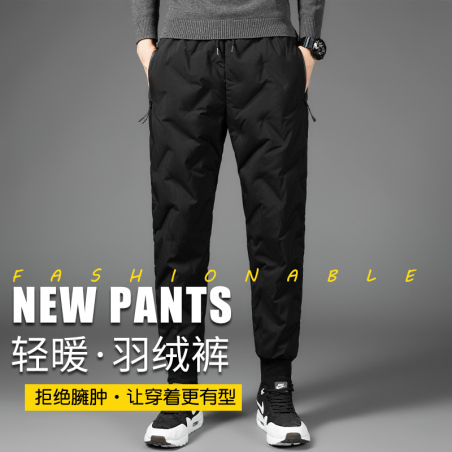 男士时尚羽绒裤男外穿保暖裤修身户外御寒裤男鸭绒裤
